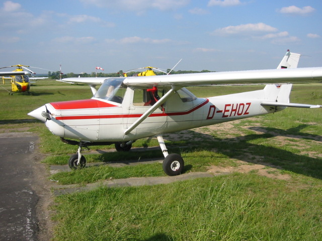 Es geht (wieder) los !Nach der bestandenen Theorieprüfung konnte ich aus privaten Gründen leider erst wieder am 02. Februar 03 loslegen. Um die Kosten der Ausbildung etwas niedriger zu halten, wechselte ich auf die Cessna 152. Da ich sowieso ein zweites Muster benötigte, paßte das aber ganz gut ins Konzept. Es war allerdings dann noch eine erneute Einweisung in dieses Flugzeugmuster erforderlich; diese fiel allerdings sehr kurz aus, da die Bedienung, bis auch Details und etwas andere Gewichte und Fluggeschwindigkeiten mit der Cessna 172 fast identisch ist. Ich flog also nun fleißig mit verschiedenen Fluglehrern die im Ausbildungsplan vorgesehenen Flugsicherheits-Übungen ab, wie Einweisung in Grenzflugzustände, Not- und Ziellandeübungen, Durchstart- und Motorausfallübungen, Landungen ohne Landeklappen und bei Seitenwind. Dabei näherte ich mich immer mehr dem Tag, an dem ich zu ersten Mal alleine fliegen sollte. Leider erschwerte das Wetter, speziell die Windverhältnisse am Platz, die Freigabe für einen Alleinflug. Am 27. Mai hatte ich dann endlich die Unterschrift von zwei Fluglehrern in meinem Ausbildungsnachweis über die Alleinflugreife. Aber eine Gelegenheit ließ leider noch auf sich warten. SOLOOOO !Am 11. Juni 03 hatte ich die D-EHOZ für einige Platzrunden mit Lehrer gebucht. Nachdem ich zwei Runden mit Kay gemacht hatte und die auf Anhieb saßen, haben wir noch zwei Ziellandungen eingeschoben. Danach noch eine saubere Abschlußlandung, und dann meinte Kay, zeitlich würde es noch klappen, daß ich heute meine ersten drei Solorunden drehen kann. Das Wetter war ideal, sonnig, wenig Wind, wenig los, alles bestens. Also kurze Pause, noch schnell eine Cola und los. Es war 19.50 Uhr, als ich zum ersten Mal ohne Lehrer in den Flieger einstieg. Da war schon ein besonderes Gefühl. Aber die Checkliste in der Hand gibt Sicherheit. Also alles streng nach Checkliste, wie ich es gelernt hatte. Um 20:00 rollte ich auf die Piste 29 auf, atmete noch einmal durch und schob das Gas rein. Hui, wie der Flieger beschleunigt, wenn man nur allein drinsitzt. Nach kurzer Rollstrecke hob mein Flieger ab, und mir wurde bewußt, daß es jetzt ausschließlich von mir abhing, mit welcher Vertikalgeschwindigkeit ich in Kürze den Boden berühre. Aber jetzt war erstmal Platzrunde angesagt. Alles, inklusive